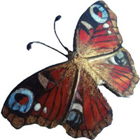 Káprázatosan szép élethű pápaszemes lepke tiffany üvegből. Nagy aprólékossággal és odafigyeléses készült. Az eredetileg narancsos-vörös színű tiffany üveget kézzel festettem meg, a lepkeport aranypor adja, csillogó üveglakkal bevonva, fixálva. Hű mása az eredeti pillangónak, mely megpihenve a... Méret: