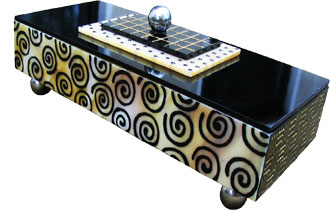 Modern és elegáns ékszerdoboz hölgyeknek. Tetején és alján gyönyörű fémgolyók, csapágyak. Oldalán izgalmas spirális mintázattal, tetején csíkokkal pöttyökkel és más egyéb motívumokkal gazdagított ajándék különlegesség, amely szinte minden korosztály tetszését elnyeri. Ékszerek és kisebb értékek... Méret: