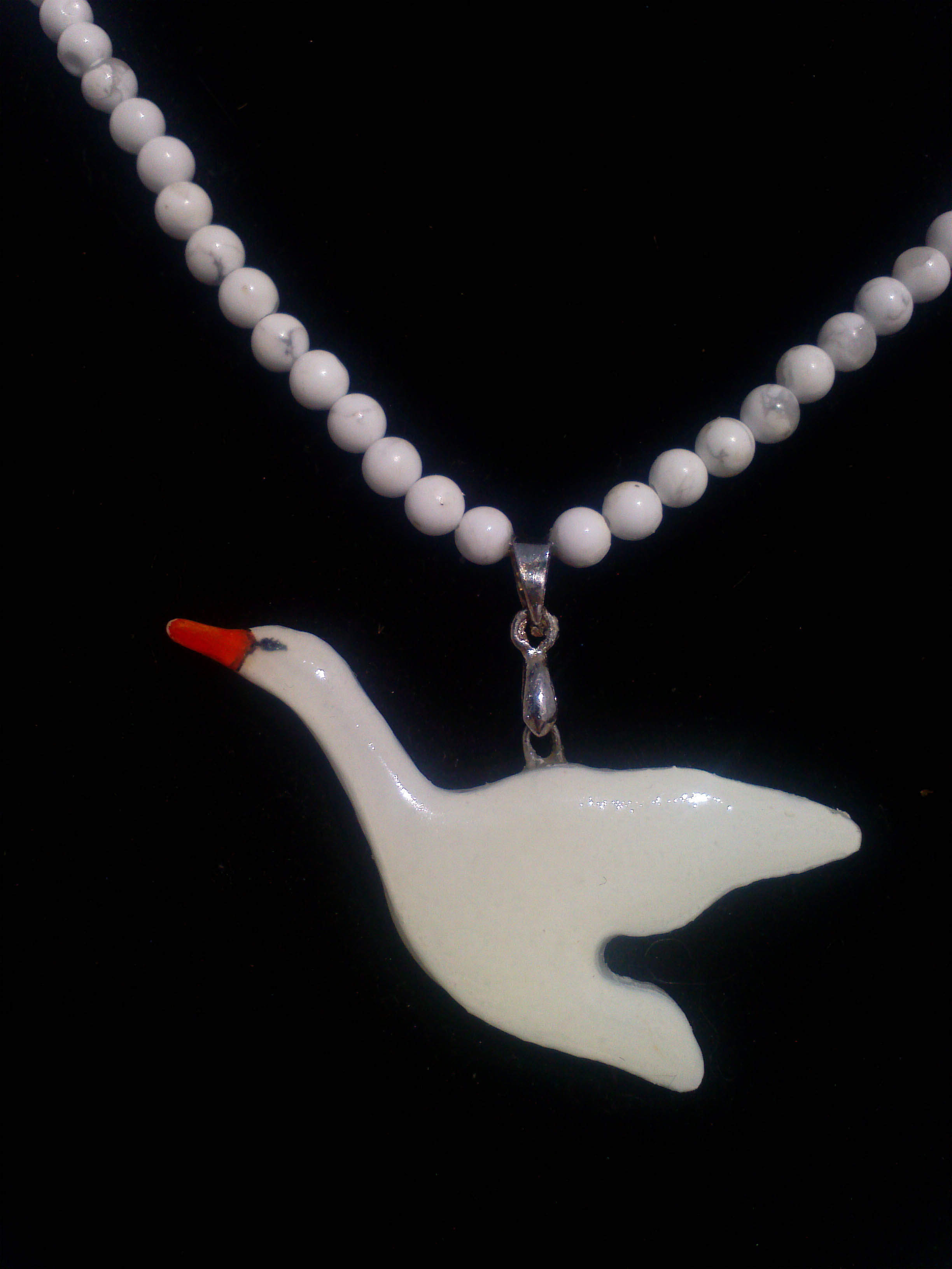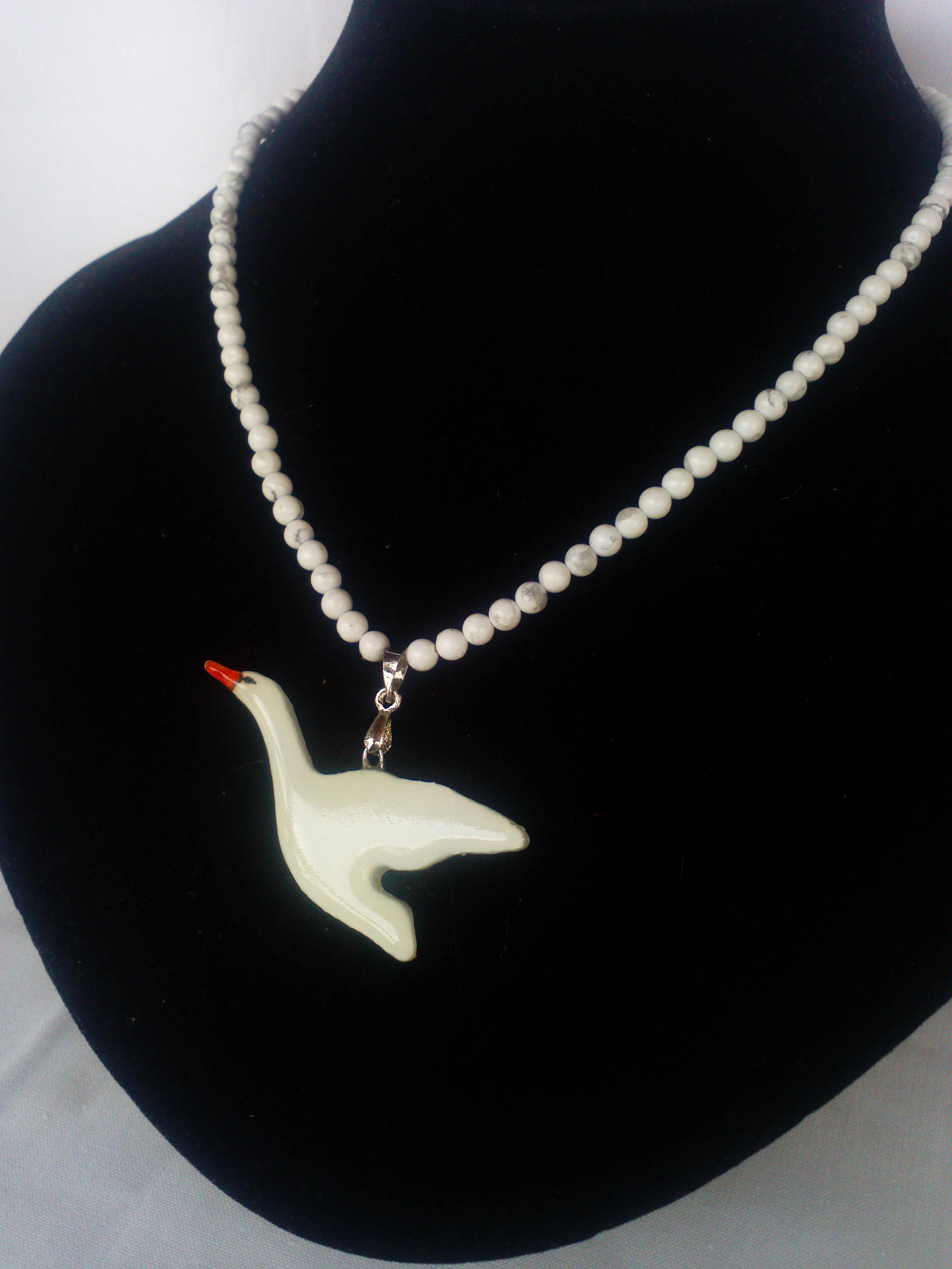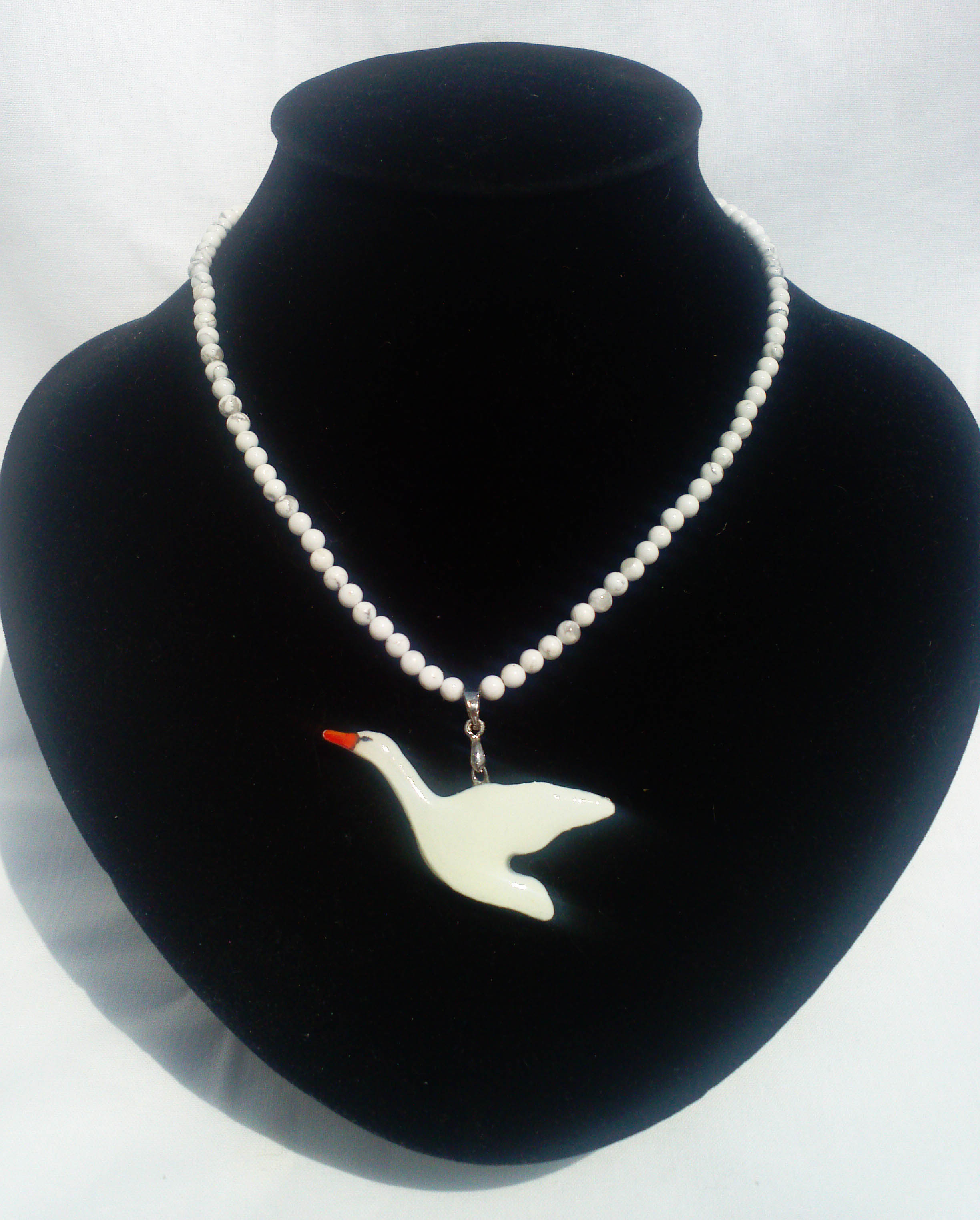 A csiszolt, 4mm-s átmérőtű fehér Howlit féldrágakő gyöngyök még inkább emelik a fényét és értékét