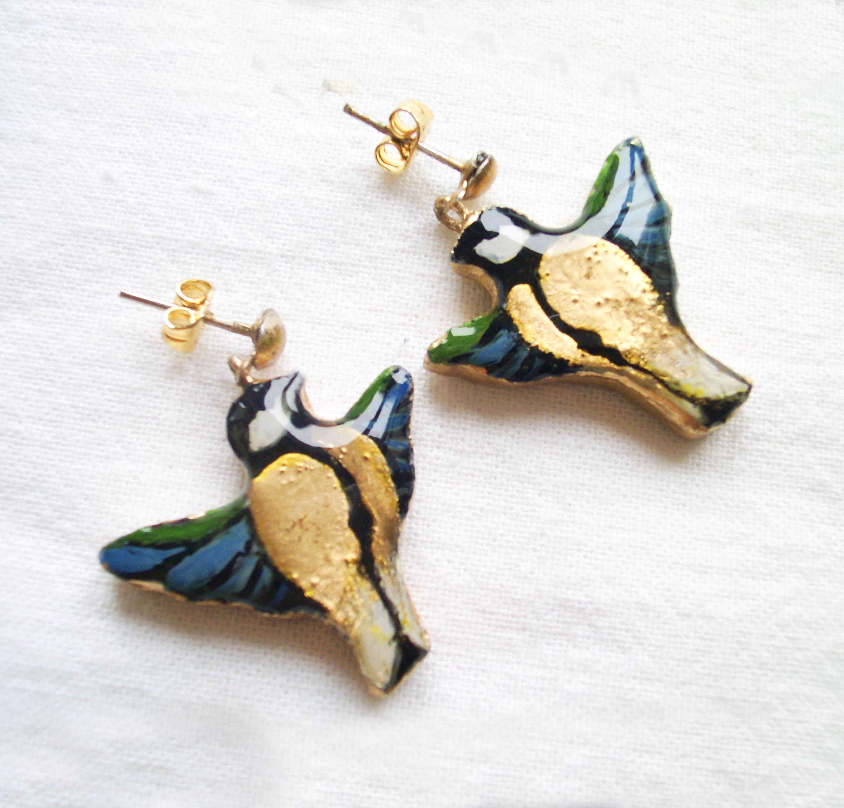 Anyaga értékes tiffany üveg, mintája nem fólia, kizárólag ecsetem nyomán született ez a kis miniatűr festmény egy tüneményes kismadárról.