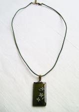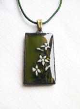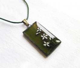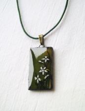 Kedves hófehér nárciszok, szerények, nőiesek, kellemes sötétzöld alapon virítanak, akárcsak tavaszi kertünk zöldjében. Esztétikus viselet.