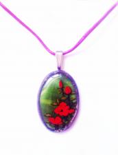 Valódi 3d-s technikával elkészített, zöld, tiffany üveg -alapra kézzel festett vörös rózsák. Hatásban - a muránói üveghez hasonlóan -, a viragok még az apró festményen belül is térben kiemelkednek. Ezt egy különleges technikával értem el.