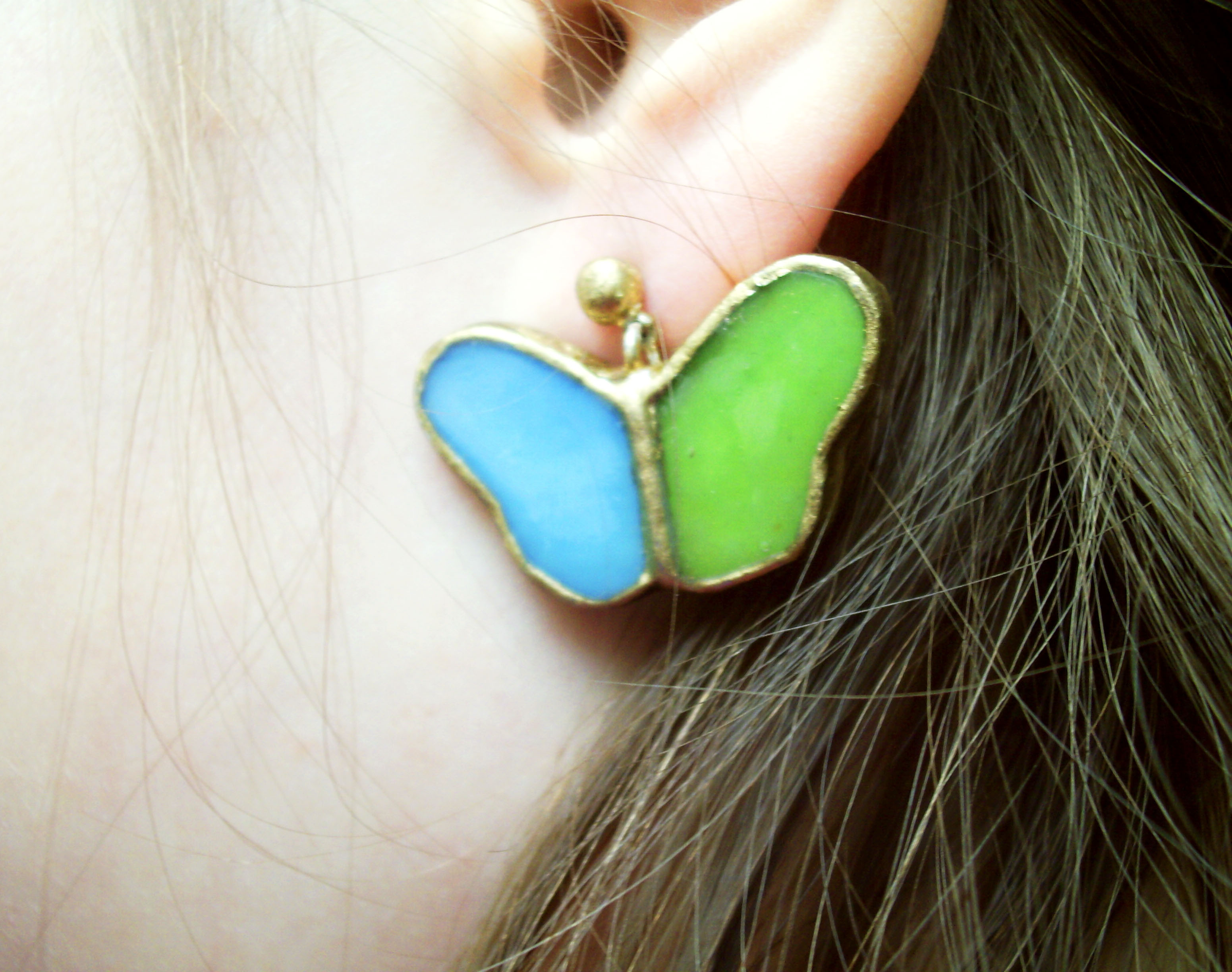 Kék, zöld, tavaszias, vidám, fiatalos viselet.
