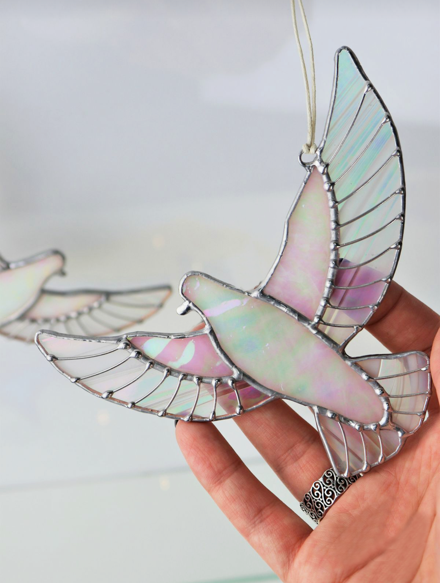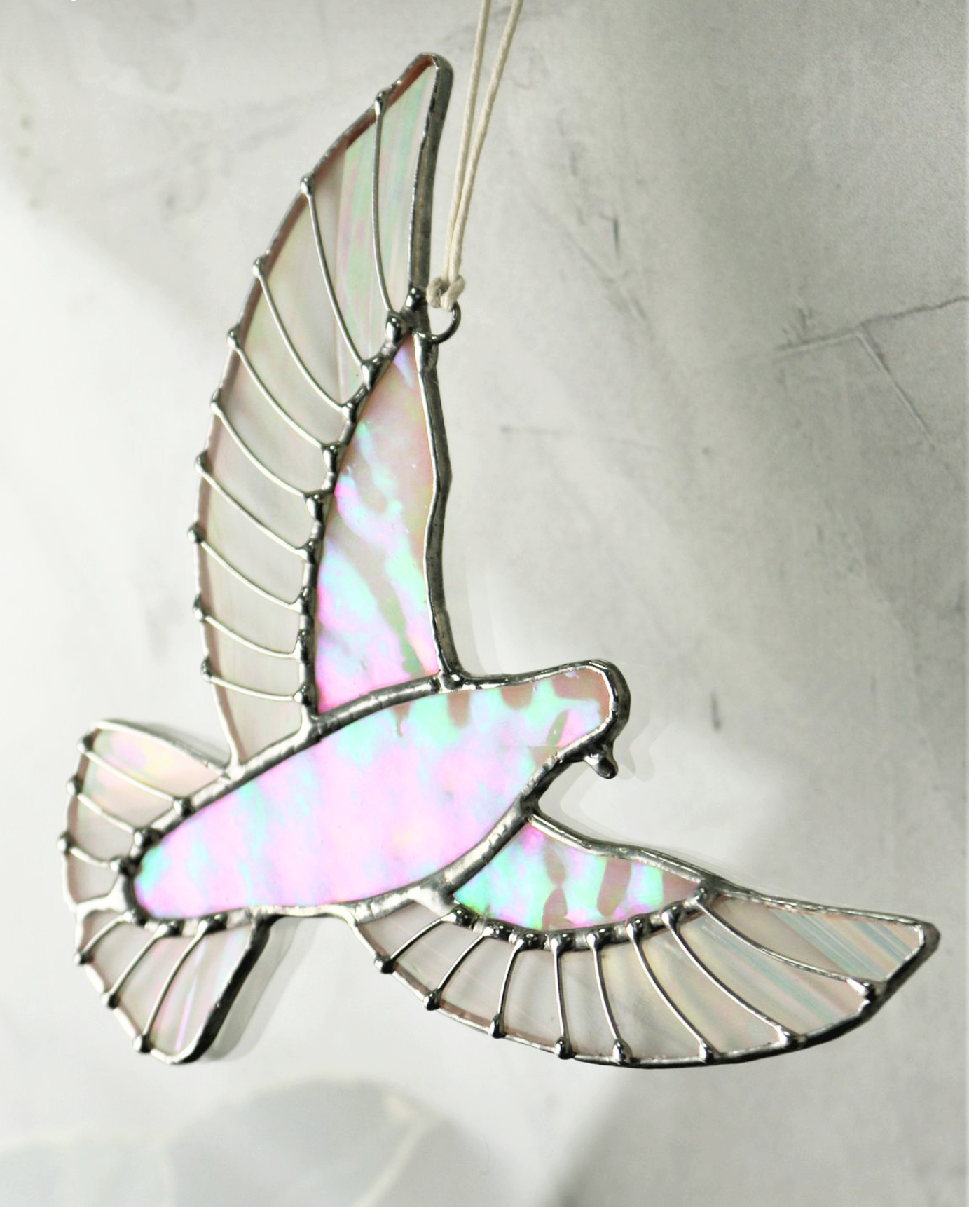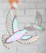 Fehér irizált üvegből készült, vadgalambot utánzó pazar dísz, mely ablakba vagy akár karácsorfadísznek is tökéletes. Az eredeti ötletet A Reszkessetek betörők c. filmben szereplő legendás vadgalamb ajándékdísz adta, mely az egymás iránti figyelmesség és szeretet hivatott kifejezni.