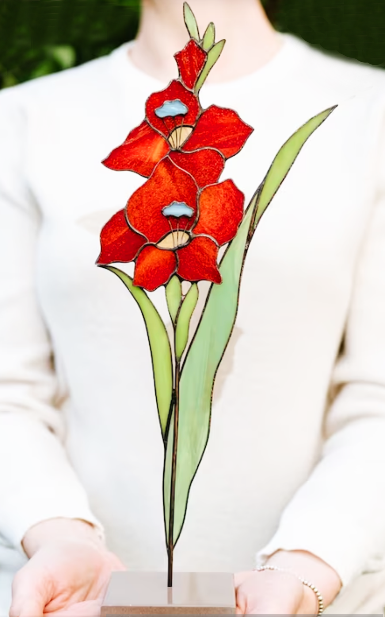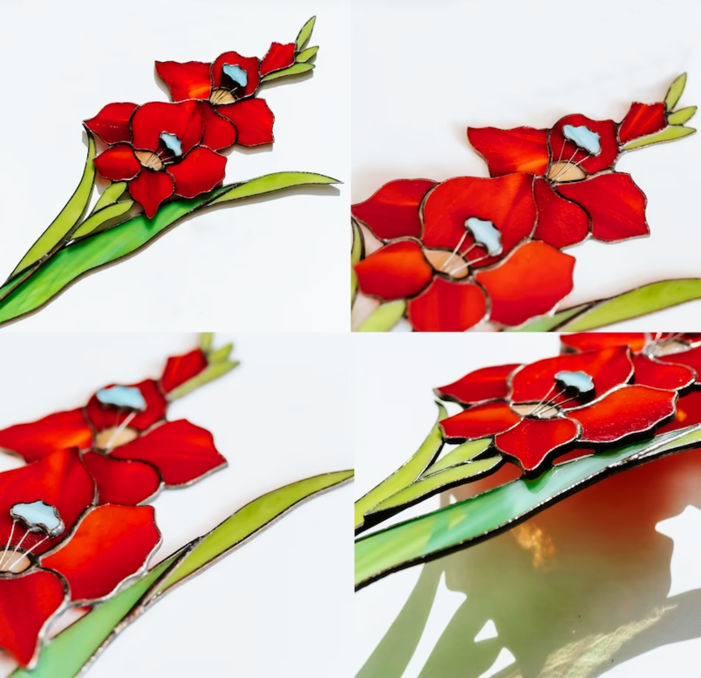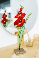 Vörös kardvirágok asztalidísz minden alkalomra. Elegáns, szenvedélyes, tökéletes aándék bármely ünnepi alkalomra, elsősorban hölgyeknek.