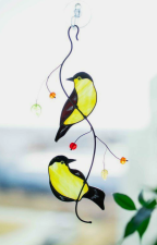 Közös évforduló esetén a fenti formán kívül akár szív-alakban is el tudom készíteni az ágat, amelyen a rigók ülnek, illetve név/neveket is lehet belekölteni ebből az anyagból.