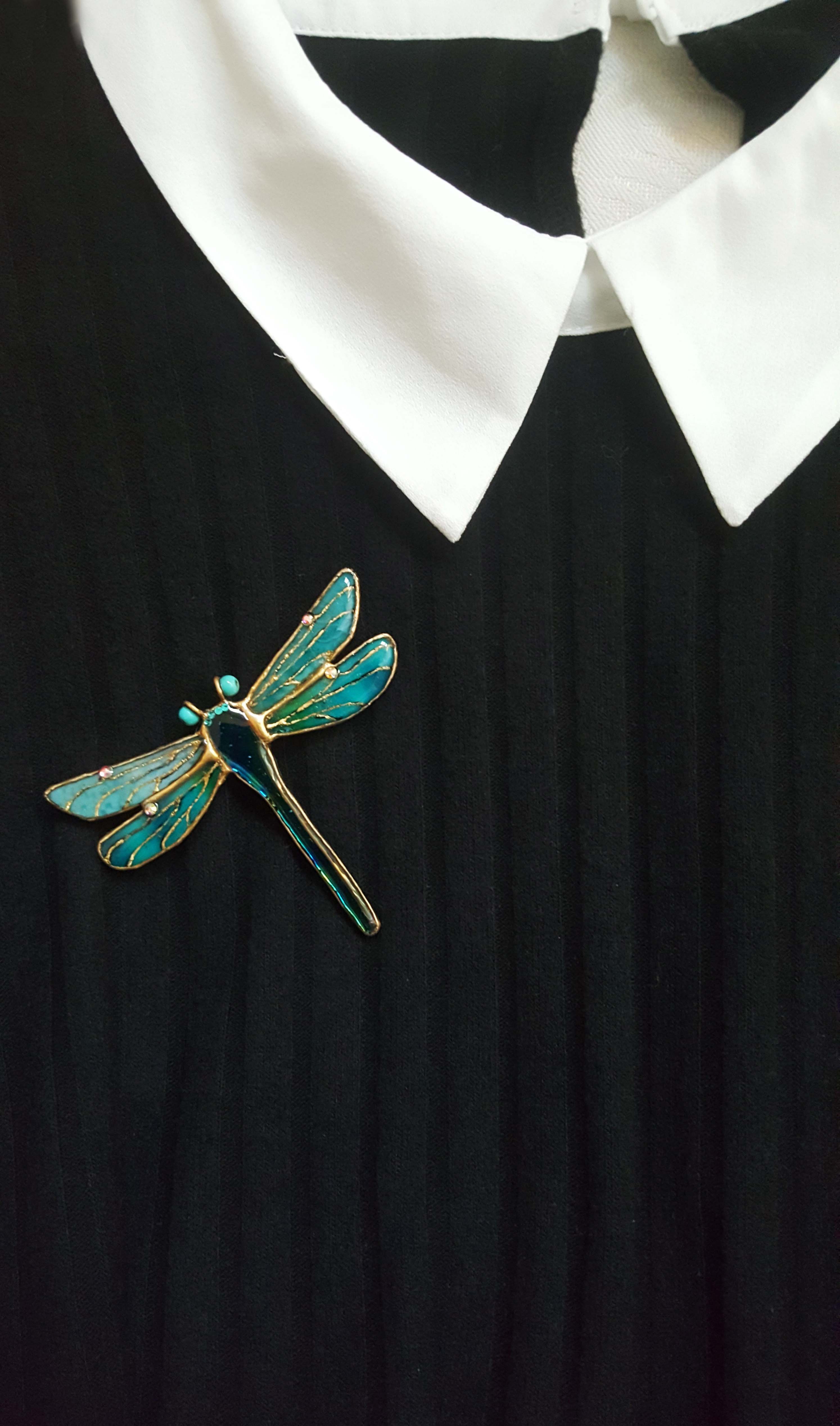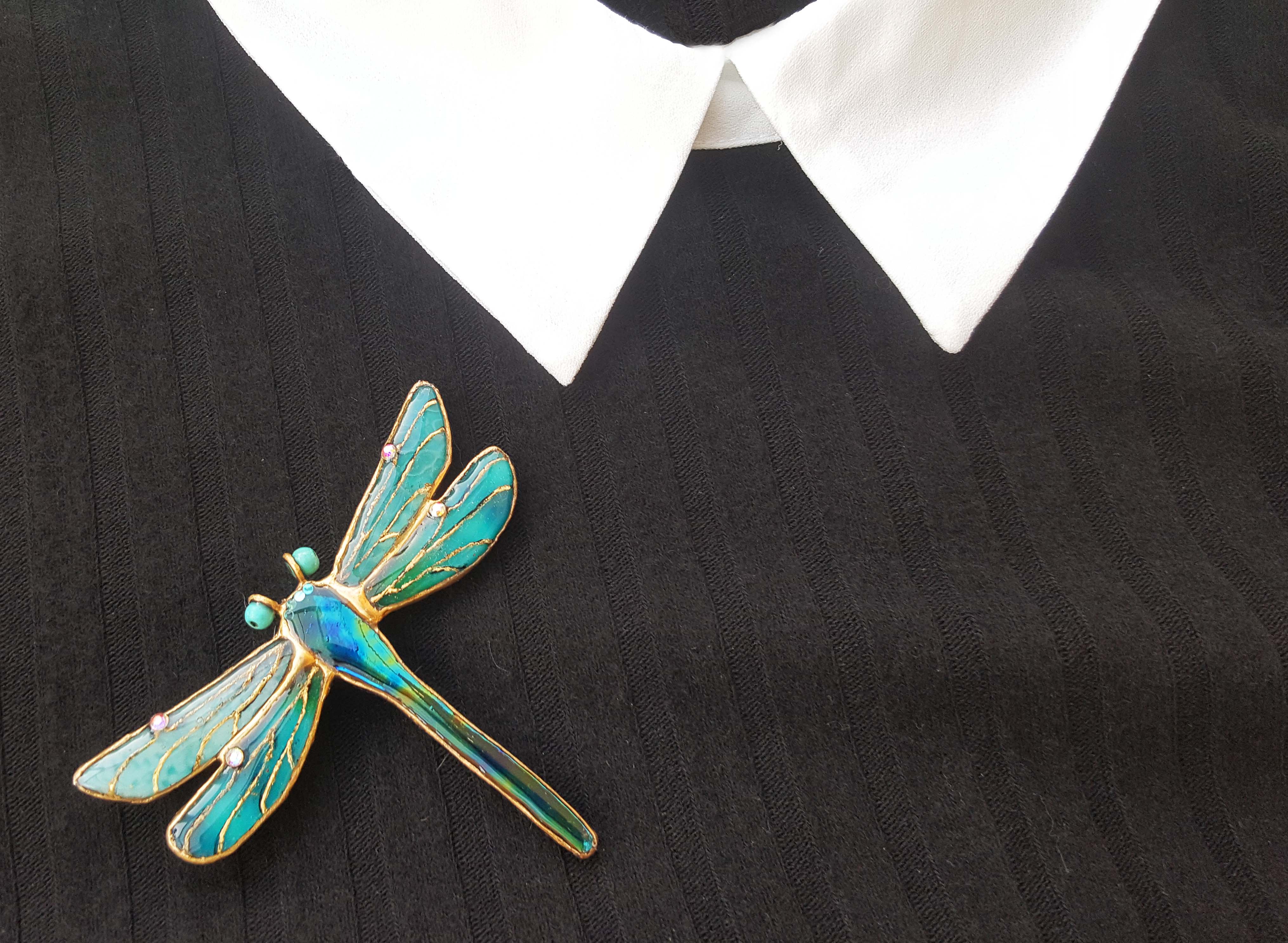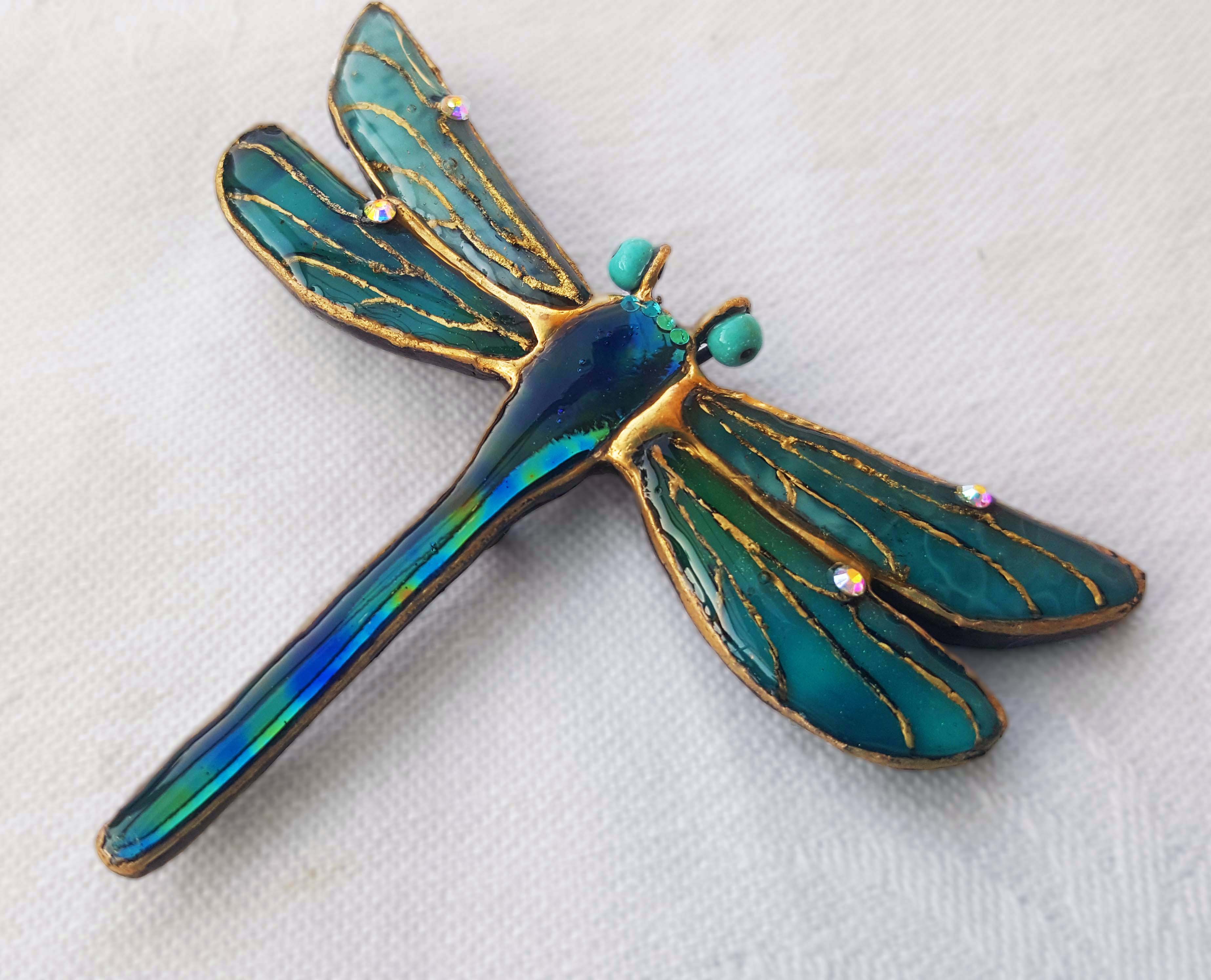 Ajánlom bármely ruhához dekorációként, blúzokhoz, blézerekhez vagy kalapra, sálra összetűző ékszerként ... csodásan dísziti a homogén színű anyagot és visszafogott, elegáns öltözéket. Ezen kívül esküvői kiegészítőnek is jószívvel ajánlom, de bármely ékszer v szitakötőmániás hölgyet levesz a lábáról. Mérete rugalmasan alakítható, nagyítható v kicsinyathető.