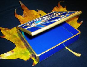 Nagyon dekoratív, zsanérral, üveggyöngy lábakkal ellátva, belső bársonyborítással is kérhető.
