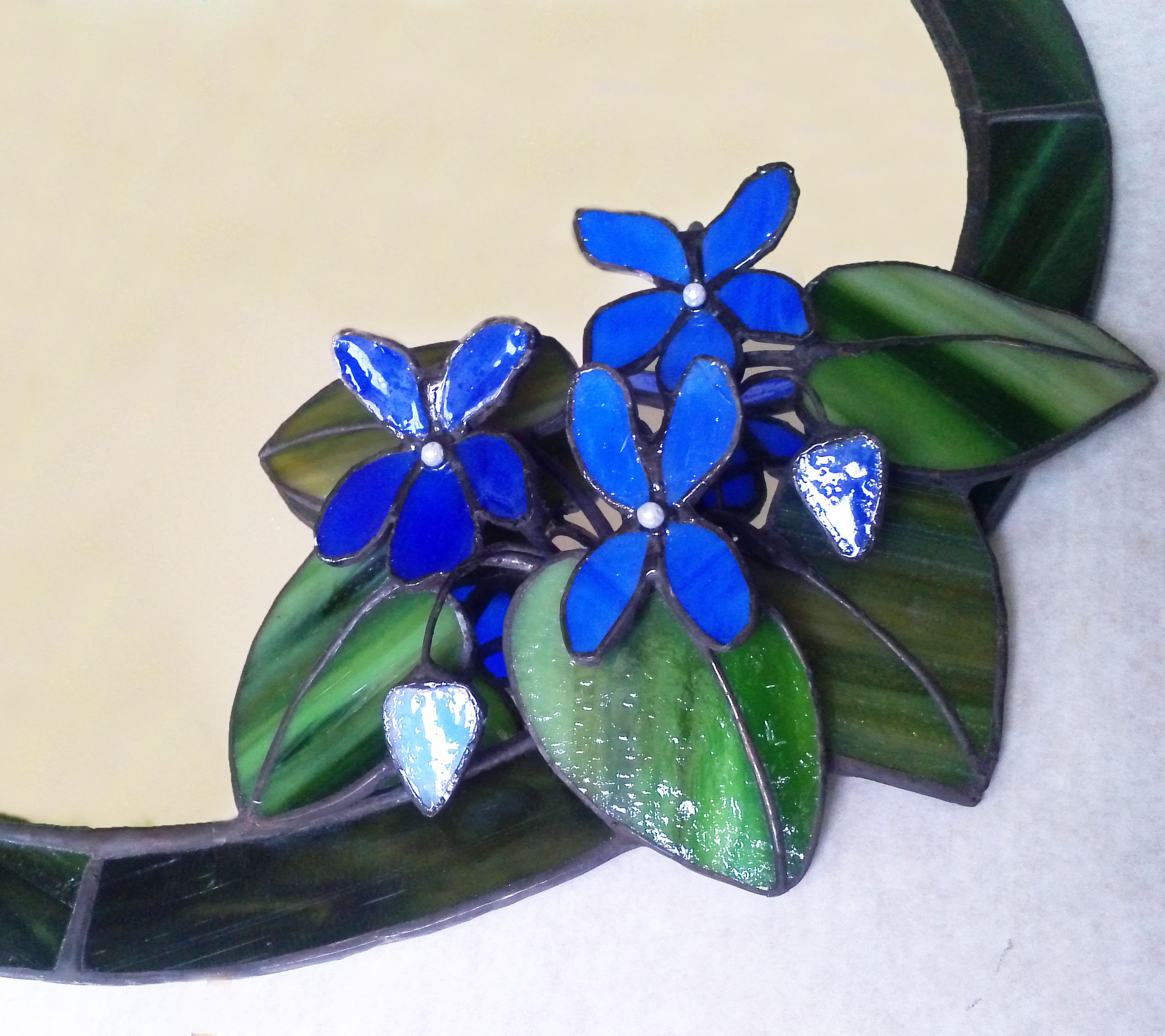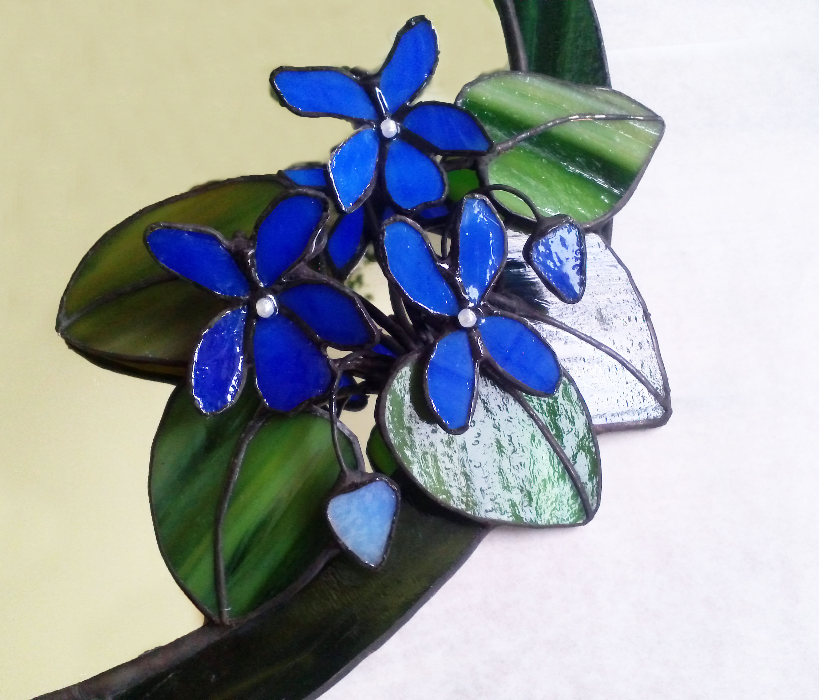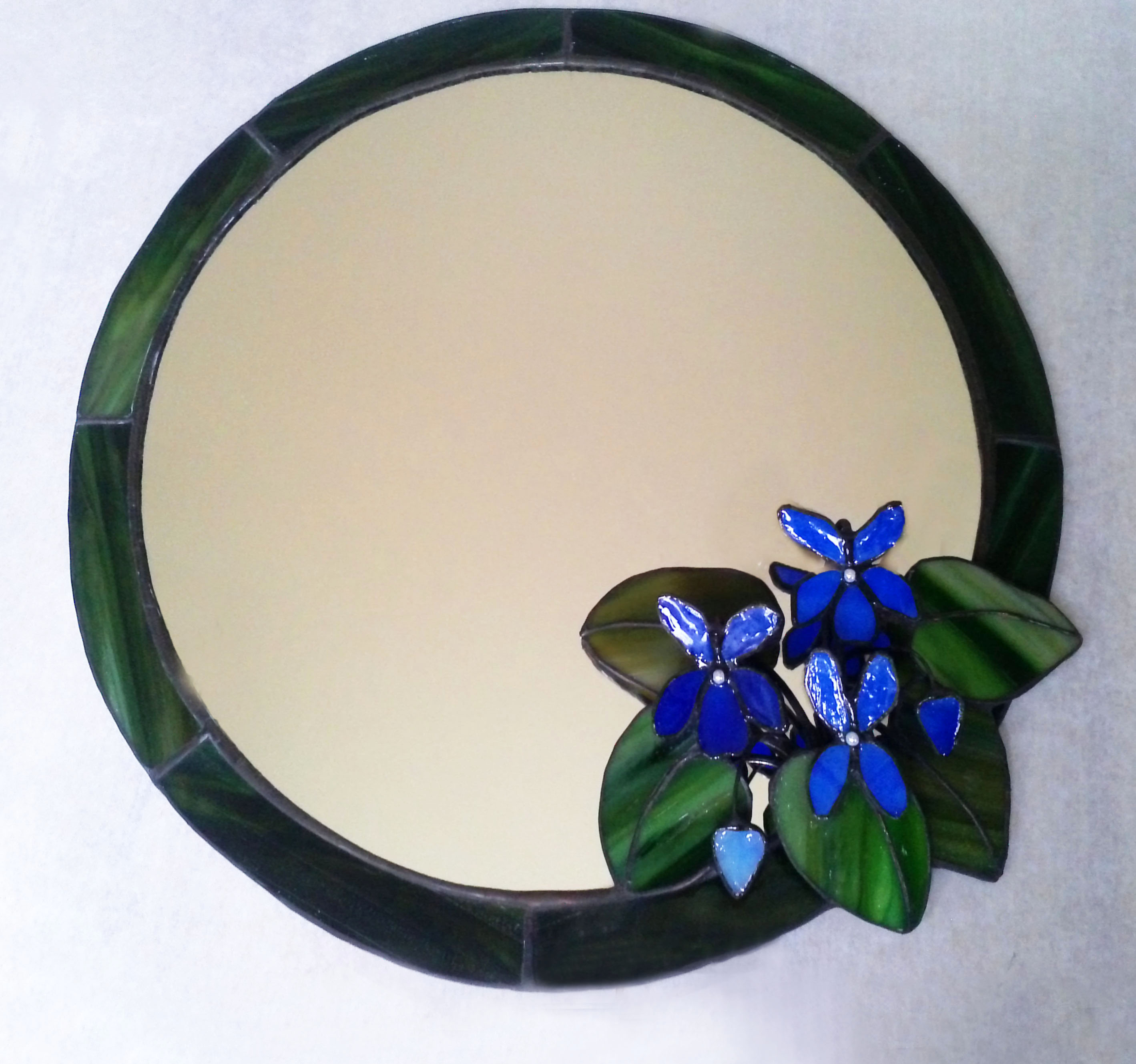 Egy csokor kedvesség azoknak, akik szeretik a természetet és az időtálló értékeket is egyszerre. Eredetileg édesanyámnak készült anyák napjára, de később úgy döntöttem többet is készítek belőle. Saját terveim alapján kombináltam össze ezt a bájos térbeli tiffany ibolyacsaládot a kör alakú tükröcskével. Elkészíteni és birtokolni is nagy öröm és vidámság. Színes és élettel teli, ugyanakkor lányos és nőies, van egy finom diszkréció benne akárcsak az igazi ibolyában, ami szelíden bújik meg az erdők avarában. Gyönyörűbb és kedveskedőbb ajándék nem is kell.