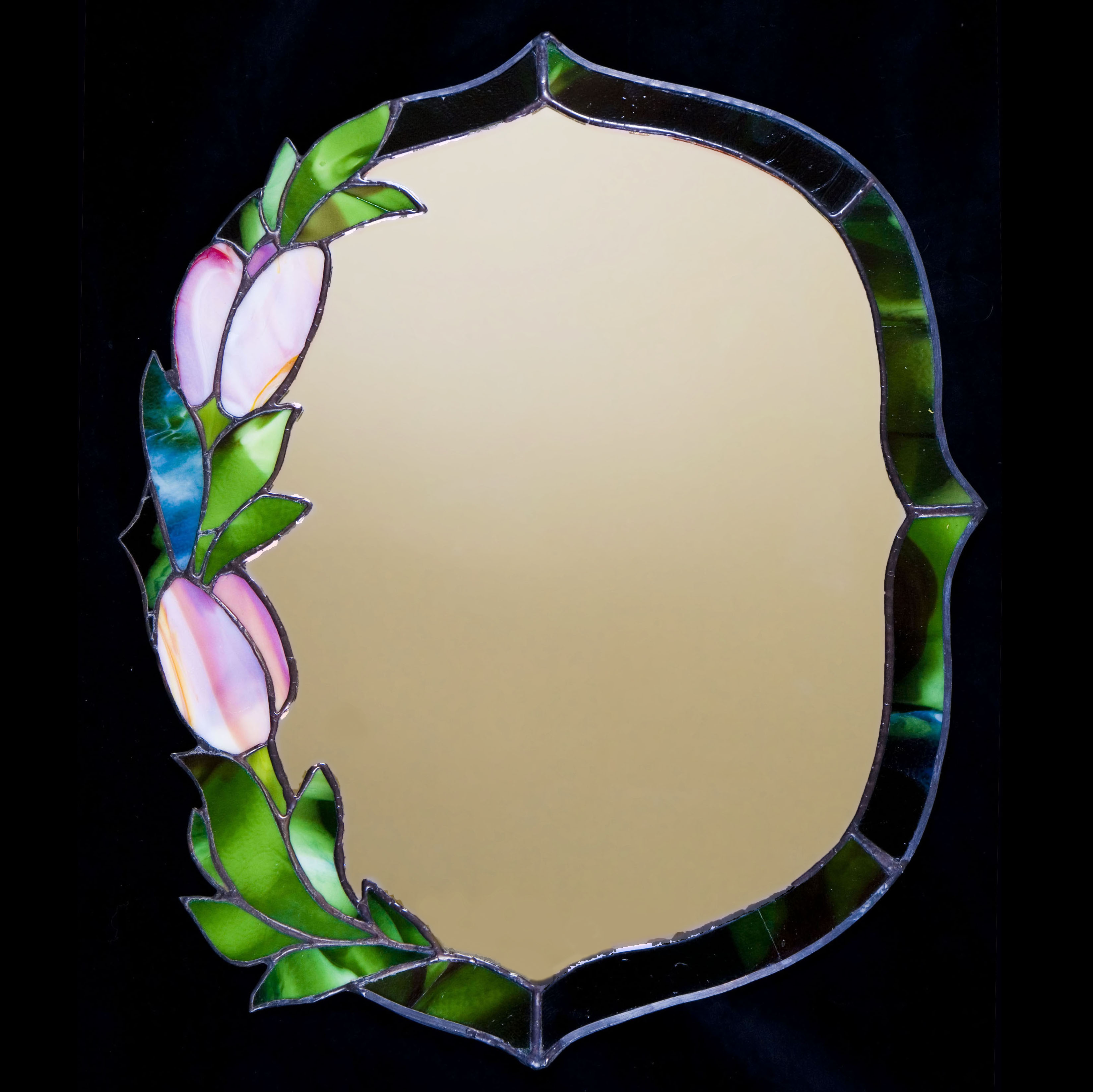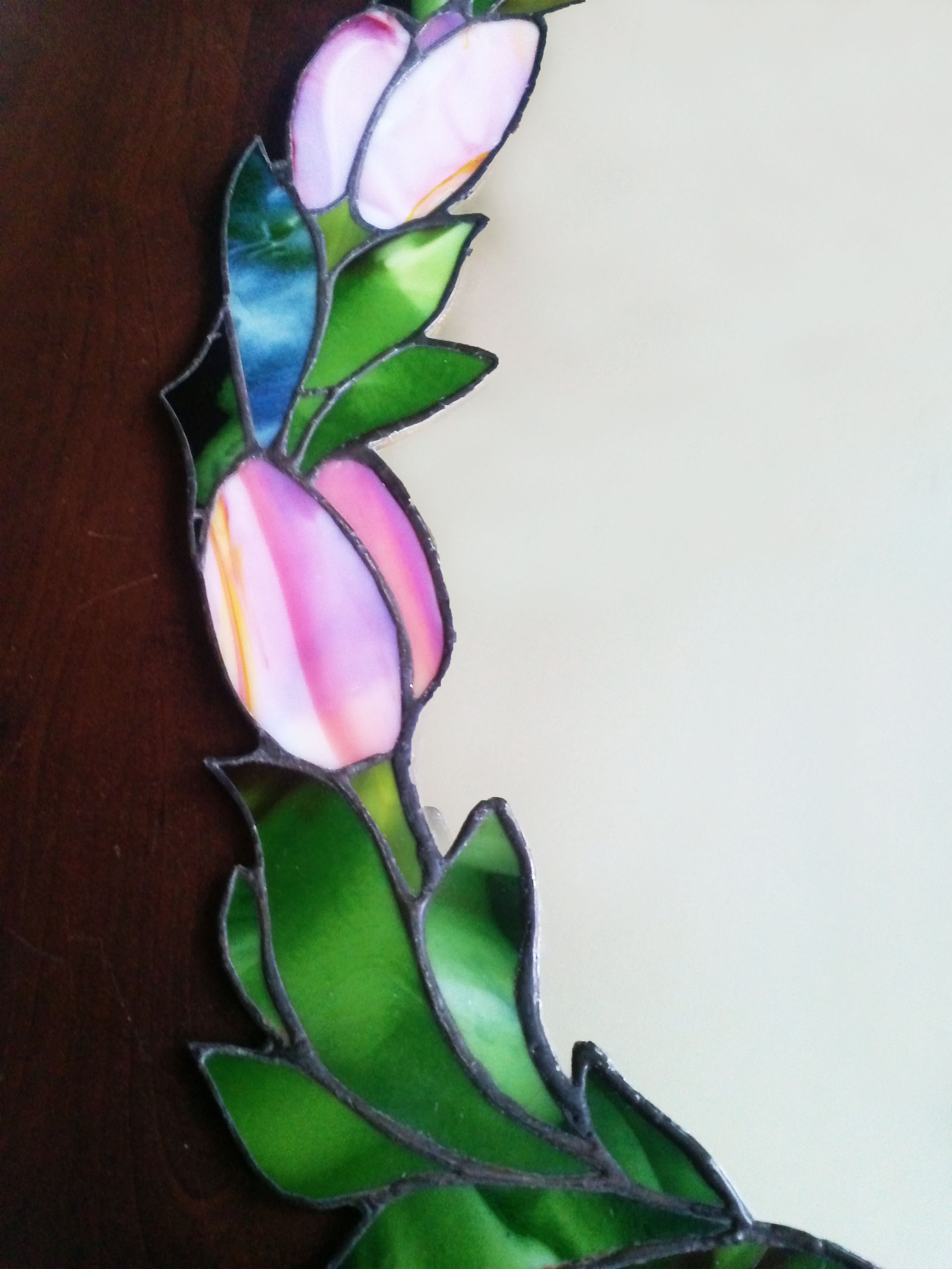 Színes virágok élettel teli formavilág egy különleges alakú tükrön. Fiatalos napfényes ugyanakkor az antik komoly hangulatú lakásokhoz is illik. Saját terveim alapján készült.