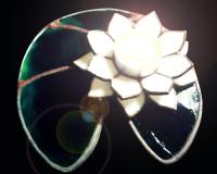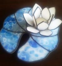 Gyönyörű lótuszvirág hófehér szirmokkal és izgalmas kék üveg-levélen. A lótusz nemcsak a tisztaságot és szépséget szimbolizálja, hanem az emberi lélek kibomlását. Azért is övezi olyan nagy tisztelet ezt a virágot, mert növekedésének és fejlődésének körülményei az ideális emberi életutat mutatják be: magja megtelepszik a folyó vagy tómeder alján, majd egy vékony inda indul el belőle, ami egésze a víz felszínéig tekereg, hogy végül a levegőre és napfényre érve kibontsa szirmait így tündöklését nem csak a világ, hanem az istenek is megcsodálhatják. Gyönyörűen átvilágítja a mécses ezt a szép színes üveget, hangulatos dekoráció. Kitűnő ajándék magadnak otthonodnak vagy ismerősödnek. Nagyon szépen mutat még egy asztal közepén vagy polcon, bárhol. Alul kis üveggyöngyök vannak. Lehet kérni irizált - szivárványos felületű üveggel, vagy bármilyen más színben is mind a szirmokat, mind a levelet illetőleg. |
