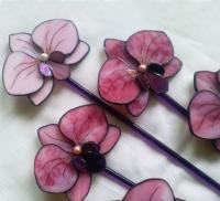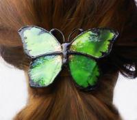 Nagy aprólékossággal és odafigyeléses készült, a narancs színű tiffany üveget kézzel festettem meg, csillogó üveglakkal bevonva, fixálva. Hű mása az eredeti pillangónak, mely megpihenve a szárnyait eregeti a napfényben, jelen esetben a francia hajcsat ívénél fogva a fej formájához idomul. Ehhez stabilan hozzá van rögzítve a pillangó, forrasztva - ragasztva: ultrabiztos.