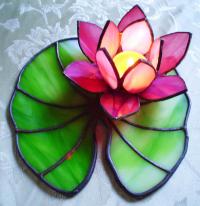 A lótusz nemcsak a tisztaságot és szépséget szimbolizálja, hanem az emberi lélek kibomlását. Azért is övezi olyan nagy tisztelet ezt a virágot, mert növekedésének és fejlődésének körülményei az ideális emberi életutat mutatják be: magja megtelepszik a folyó vagy tómeder alján, majd egy vékony inda indul el belőle, ami egésze a víz felszínéig tekereg, hogy végül a levegőre és napfényre érve kibontsa szirmait így tündöklését nem csak a világ, hanem az istenek is megcsodálhatják. Gyönyörűen átvilágítja a mécses ezt a szép színes üveget, hangulatos dekoráció. Kitűnő ajándék magadnak otthonodnak vagy ismerősödnek. Nagyon szépen mutat még egy asztal közepén vagy polcon, bárhol. Alul kis üveggyöngyök vannak. Lehet kérni irizált - szivárványos felületű üveggel, vagy bármilyen más színben is mind a szirmokat, mind a levelet illetőleg. |