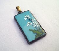 Ciánkék alapon fehér nefelejcsek üvegmedál |