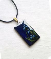 Kék íriszek festett üvegmedál |