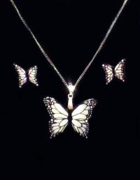A csat megihlet?je és múzsája; az élő lepke, párját ritkítóan szépséges, csak ezüstérmesként kullog utána kis munkám, melyhez -hozzáteszem - a gyönyörű kék színű tiffany-üveg alapanyagot, szintén kizárólag az Amerikai kontinensen készítik, onnan repül ide.