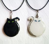 2 az 1 ben fekete fehér kétoldalú macskás medál |