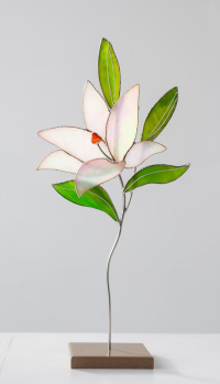 Naturalista, élethű utánzata a tavasz legpompásabb virágának; (Magnoliaceae), mely otthonodba is színt, derűt és vidámságot hoz. Elegáns, nőies, bármely alkalomra kitnő ajándék. Részletgazdag, pontos kivitelezés, melynek alapját gyönyörű mályvaszínű Armstrong és Spektrum üvegek adják. Szilikon tappanccsal ablakra is illeszthető de csillárra v szögre akasztva is varázslatos látványt nyújt. |