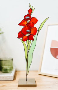 Vörös kardvirágok asztalidísz minden alkalomra. Elegáns, szenvedélyes, tökéletes aándék bármely ünnepi alkalomra, elsősorban hölgyeknek.