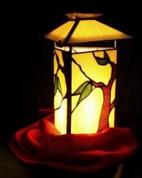 Megrendelésre készült enyhén minimalista stílusú japán cseresznyevirágos asztali lámpa. Elegáns, szinte minden féle-fajta környezetbe tökéletesen illeszkedik, visszafogott, aprólékosan kidolgozott munka. A képen látható lámpa valódi sárgaréz talpal van, ezzel együtt értendő az ár kompletten, spiáter talpat ehhez a lámpához, (bár olcsóbb), mégsem javasolnék. A széltében terebélyes lámpabúra és a talp formavilága egyaránt a japán pagodák formáját utánozza.
