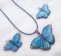 Ékszerszett, kézzel festett királylepke ezüsttel |