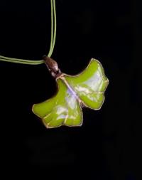Egy csodaszép Ginkgo levél domborúra lakkozott felülettel, szép ívvel illeszkedik a nyakba, Különleges viselet, életteli színvilág |
