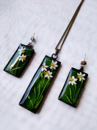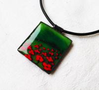 Kézzel megfestett világoszöld alapon virítóan piros pipacsok, medál és fülbevalópár. feltűnő, élénk, vidám viselet hétköznapra és ünnepi alkalomra is alkalmas. |